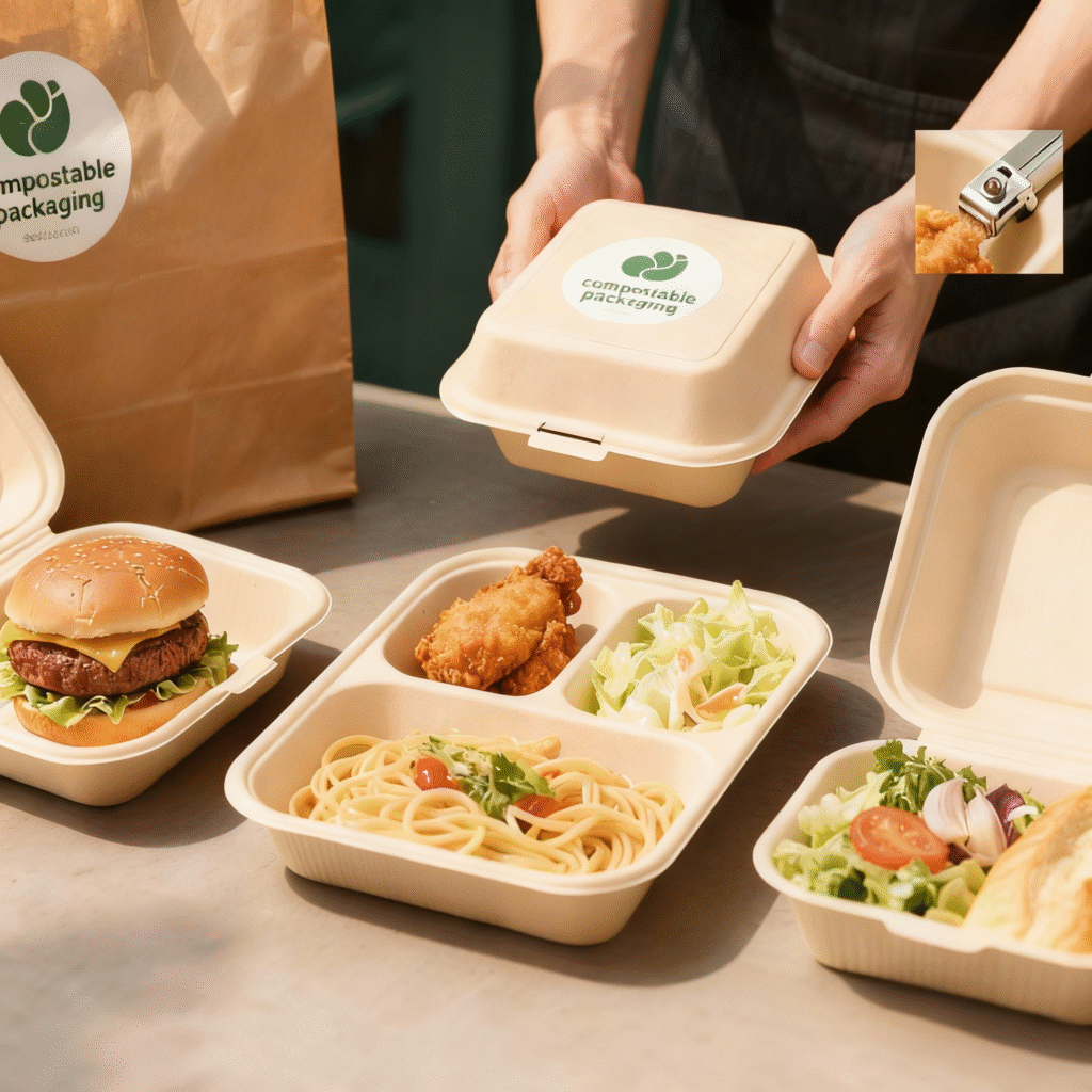 | Clamshells & Trays | 100% Bagasse | 1–3 compartments | -20°C to 100°C | Food Delivery, Take-out | Barcoding, Private Label |
