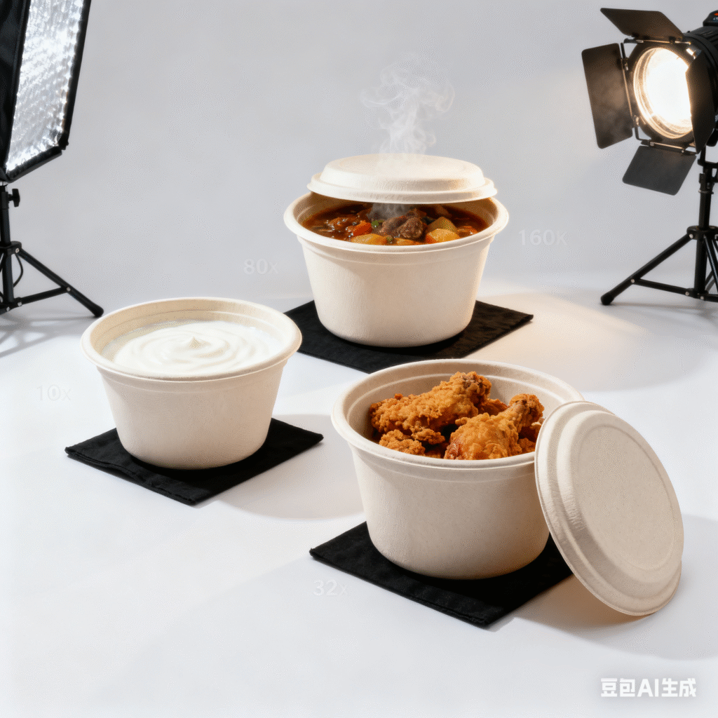 Bowls / Soup containers8 oz / 12 oz / 16 oz / 32 oz8–32 oz10–45 gup to ~80–95°CModerate — good for soups; formulation affects grease handlingMany grades microwave-safe; lids may differIndustrial compostable (depending on grade)30k–50k pcs / SKU200–500 pcs / inner, with matching lid packs